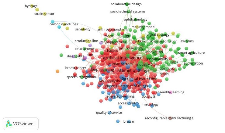 To begin the selection of relevant articles, they were analysed using the VOS Viewer software, which allowed the creation of a keyword network based on the keywords found in the articles, shown in Figure 2.