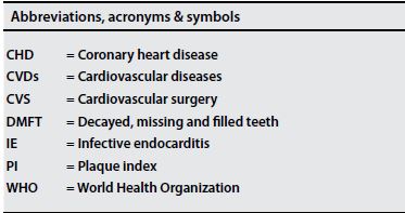 Methods: Assessment of oral health status, oral hygiene practices and treatment needs of 106 hospitalized patients in preparation for cardiovascular surgery. Patients were interviewed using a structured questionnaire designed for this study and oral examination was carried out by a dentist.