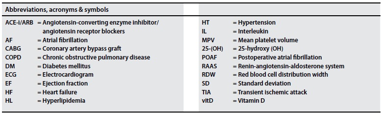 Cerit L, Kemal H, Gulsen K, Ozcem B, Cerit Z, Duygu H. Relationship between vitamin D and the development of atrial fibrillation after on-pump coronary artery bypass graft surgery. Cardiovasc J Afr. 2017;28(2):104-7.