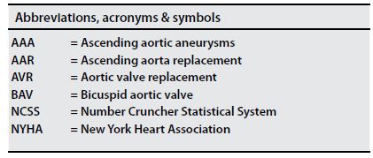 Keywords: Aortic Aneurysm, Aortic Aneurysm, Thoracic/Surgery, Aorta/Surgery, Aortic Valve/Abnormalities, Bicuspid Aortic Valve.