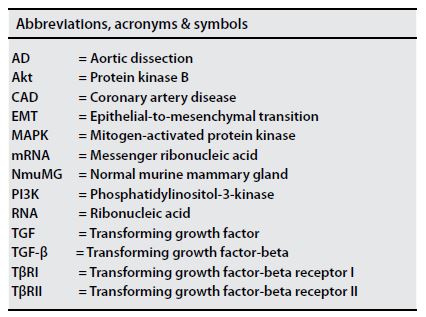 Keywords: Aneurysm, Dissecting, Coronary Artery Disease, Intercellular Signaling Peptides and Proteins, Blotting, Western.
