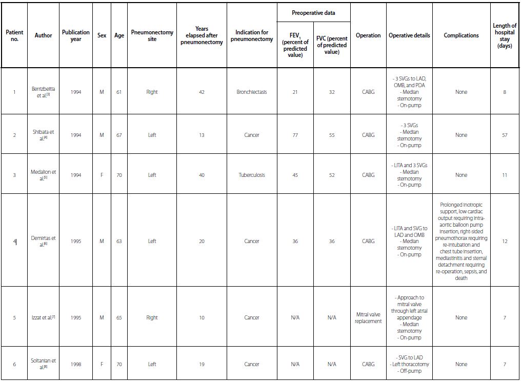 Conclusion: Thorough preoperative evaluation and intensive respiratory physiotherapy are essential before performing cardiac operations on patients with previous pneumonectomy.