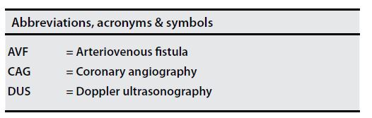 Keywords: Coronary Angiography/Adverse EffectsCoronary Angiography/Adverse Effects,Arteriovenous FistulaArteriovenous Fistula,Endovascular ProceduresEndovascular Procedures.