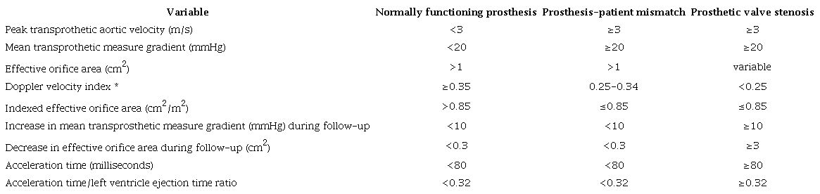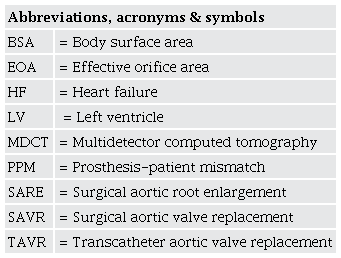 Pibarot et al.[6] state that PPM is characterized by high transprosthetic velocity and gradients, normal EOA, small indexed EOA, and normal morphology and mobility of leaflets. Transthoracic or transesofageal echocardiography (TTE or TEE) with Doppler is the basis of the diagnosis and quantification of PPM, but other imaging modalities, such as multidetector computed tomography (MDCT), may provide important complementary information regarding the prediction and assessment of PPM[6].