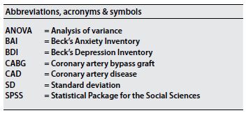 Keywords: Depressive Disorder, Anxiety Disorders, Coronary Artery Bypass, Coronary Artery Diseases, Quality of Life.