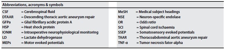 Conclusions: Although there is significant interest in this topic, there still remains a significant lack of high-quality studies investigating CSF biomarkers during TAAR to detect SCI. A large and multicentre study is required to identify the significant role of each biomarker.