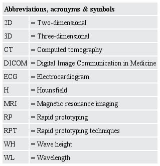Rapid prototyping (RP) is a process by which three-dimensional (3D) computerized surface models are converted into physical models. This print technology was developed in the 1980s and for some time it was used only in industry. It was originally developed to design components for numerous products, including automobiles, aircraft, and computers. With the unique capabilities afforded by modern imaging modalities, such as multi-detector computed tomography (CT), magnetic resonance imaging (MRI), and 3D echocardiography[1], the use of RP has been extended to medical applications.