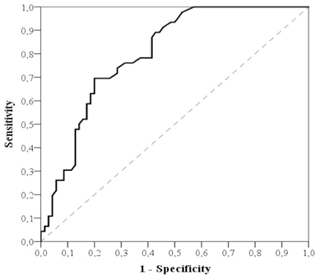 NLR was defined as the ratio of the absolute count of neutrophils to lymphocytes. The patients were divided into groups based on the NLR as follows: Group I (NLR < 0.80) and Group II (NLR ≥ 0.80) according to the receiver-operating characteristic (ROC) curve.
