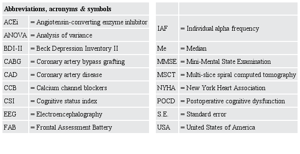 Conclusion: Our findings indicate that 54% of the patients suffer from postoperative cognitive decline associated with increased theta and decreased alpha rhythms 5-7 years after CABG.