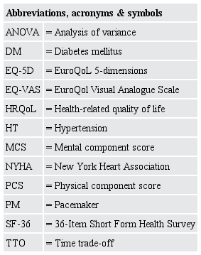 Demographic data were collected through a questionnaire developed by the researchers according to the literature [9,12] containing personal data such as age, gender, education, comorbidities (hypertension, diabetes mellitus, chronic kidney disease, and chronic obstructive pulmonary disease), whether they had PM and the duration of device implantation, and NYHA functional classification. Information on HRQoL was collected through two generic questionnaires: EQ-5D and SF-36. The research was performed orally by the researchers.