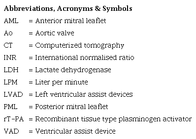13 Vitale N, Renzulli A, Cerasuolo F, Caruso A, Festa M, de Luca L, Cotrufo M. Prosthetic valve obstruction: thrombolysis versus operation. Ann Thorac Surg. 1994;57(2):365-70. doi:10.1016/0003-4975(94)90998-9.