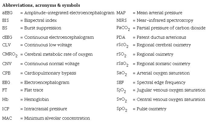 Introduction: Neuromonitoring (electroencephalogram [EEG] and cerebral oximetry) is essential for appropriate anesthesia and neuroprotection assessment during pediatric cardiac surgery.