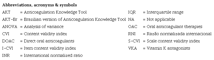 Appendix 1 - AKT-Br - Validation of the Brazilian version of Anticoagulation Knowledge Tool (AKT-Br - Validação da versão brasileira da ferramenta de conhecimento sobre anticoagulantes)