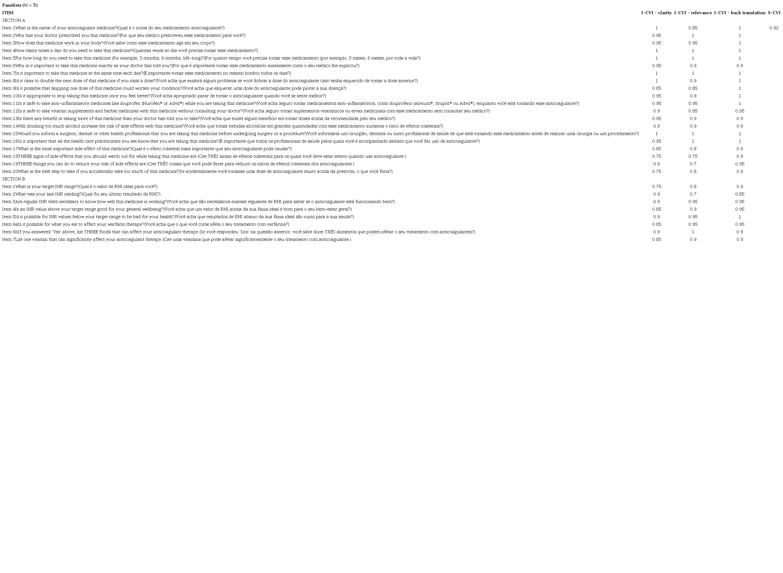 Keywords: Anticoagulants, Warfarin, Surveys and Questionnaires, Medication Adherence, Translating, Reproducibility of Results, Decision Support Techniques.
