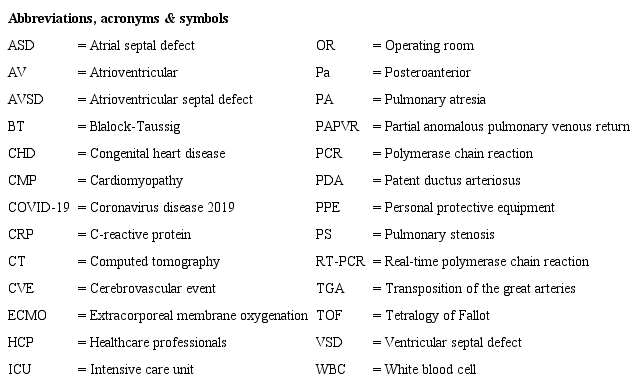 Keywords: Congenital Heart Disease, Cardiac Surgical Procedures, Covid-19, Real Time Polymerase Chain Reaction, Delivery of Health Care, Early Diagnosis, Child.
