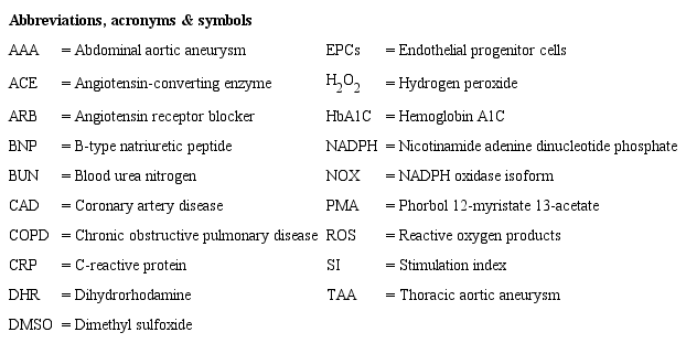 In the current report, we present a single-center study with 30 patients with TAA for the enumeration of EPCs and results of DHR assay. We compared patients and control samples for the number of EPCs and NADPH oxidase activity since these parameters have relation with the clinical progression of TAA patients.