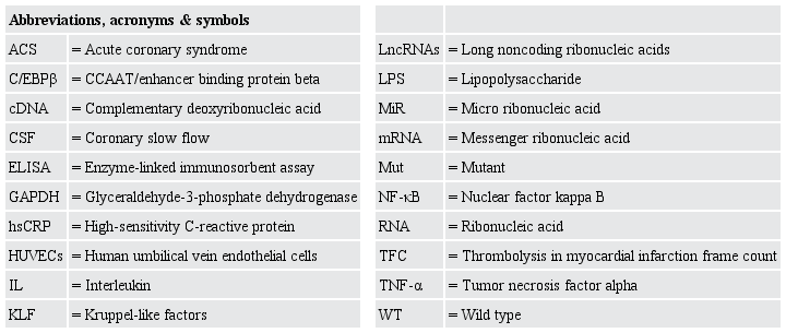 Keywords: Myocardial Infarctation, Inflammation, Interleukin-18, Interleukin-6, RNA, Long Noncoding, C-Reactive Protein, MicroRNAs, GKLF protein.