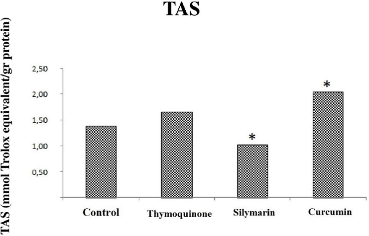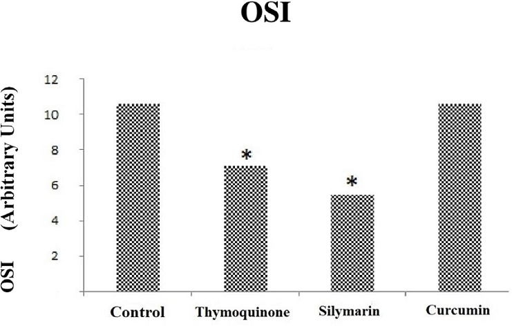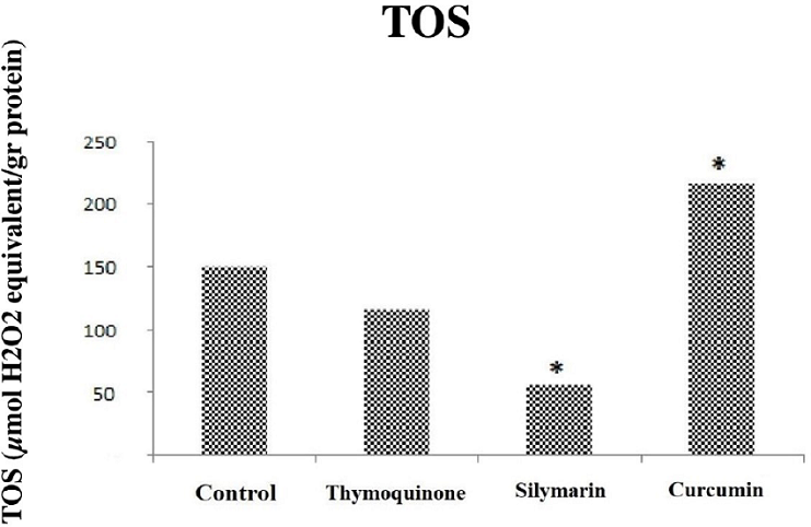 Effect of Thymoquinone, Silymarin, and Curcumin on TAS, TOS, and OSI values
