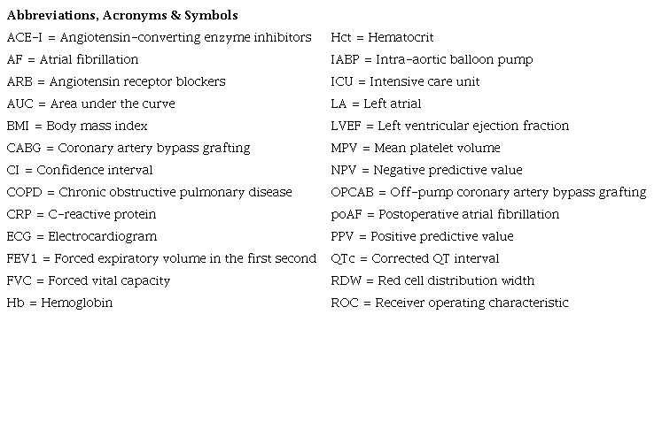 Ozsin KK, Sanri US, Toktas F, Yavuz S. Relationship between red cell distribution width and mean platelet volume with new onset atrial fibrillation afteroff-pump coronary artery bypass grafting. Bratisl Lek Listy. 2018;119(6):335-40. doi:10.4149/BLL_2018_063.