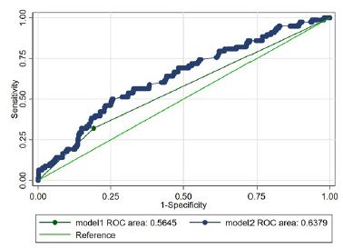 Major and life-threatening bleeding was reported in 78 patients (13.59%). Univariable risk factors for bleeding were female gender (P=0.047), body surface area (BSA) (P=0.002), extracardiac arteriopathy (P=0.04) and HAS-BLED score ≥3 (P=0.01). Multivariable analysis for factors affecting bleeding is presented in Table 2. The C-index of the HAS-BLED score increased from 0.56 (95% confidence interval [CI]: 0.51-0.61) to 0.64 (95% CI: 0.57-0.70) (P=0.02) after adding BSA and extracardiac arteriopathy (Figure 1).