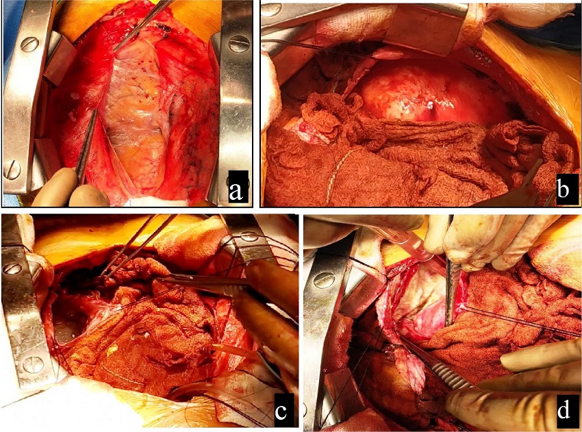 ABSTRACT: Primary cardiac hydatid cyst is a rare and fatal pathology, especially when involving the left ventricular free wall. A 44-year-old male was diagnosed with large intramural left ventricular hydatid cyst with wall thickness of 6 mm at the thinnest point. Cyst was accessed through pleuropericardial approach (left pleura opened, followed by entry into cyst directly through adjacent pericardium without removing the pericardial adhesions) which resulted in easy entry into the cyst, mitigating the risk of mechanical injury. This case report highlights that with detailed evaluation, cardiac hydatidosis can be addressed with off-pump technique, reducing the anaphylaxis risks and cardiopulmonary bypass-related effects.