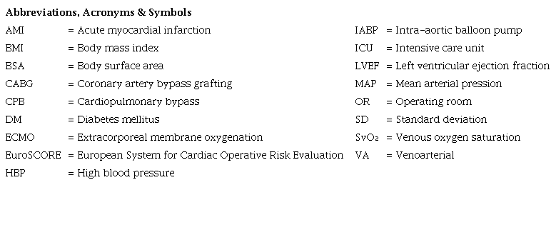 Keywords: Extracorporeal Membrane Oxygenation, Stroke Volume, Heart Failure, Left Ventricular Function, Morbidity, Catheterization.