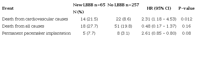 Conclusion: New LBBB after TAVR procedure is associated with an increased risk of death from cardiovascular causes, but it did not increase the risk of all-cause mortality and PPI over the long-term period.