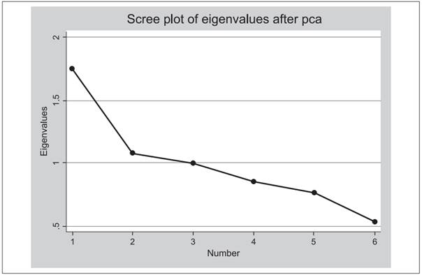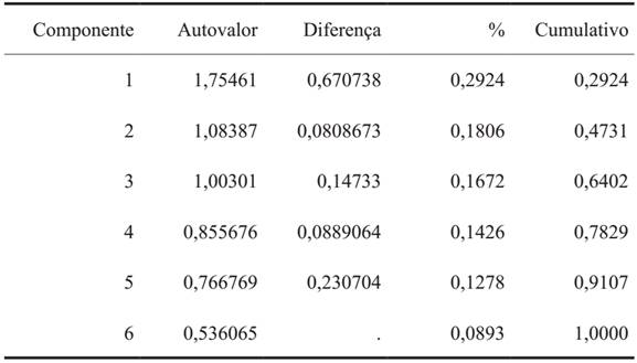 De acordo com o estudo dos autovalores e dos percentuais de explicação, consideramos os 3 primeiros componentes para a construção do Índice de Hábitos Culturais (IHC), que somados explicam 64% da variação da amostra, cujos autovetores se expressam a seguir: