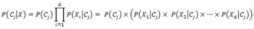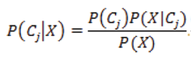 O algoritmo Naïve Bayes calcula a probabilidade P(C j|X) P(C j|x) por meio do Teorema de Bayes ( HAN; KAMBER; PEI, 2012):