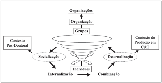 Nesse sentido, a lógica do pós-doutorado é incentivar essa proximidade visando o processo de desenvolvimento do conhecimento científico por meio da socialização entre pesquisadores em laboratórios de primeira linha e relacionados com a produção de fronteira, para assim a posteriori, por uma evolução do processo, por meio da externalização do conhecimento científico, culminar em uma produção para que possa vir a ser pública e compartilhada pelos demais membros da comunidade acadêmica ( CASTRO; PORTO, 2008).