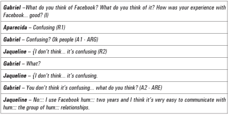 Quanto aos demais nomes que aparecem na transcrição, sua participação na pesquisa se restringe aos momentos em que o grupo como um todo foi passível de análise.