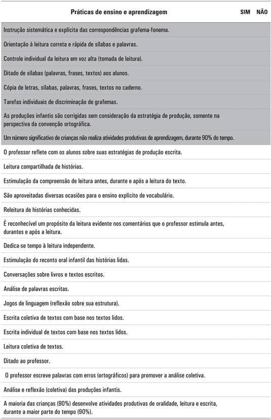 Instrumento para caracterizar o perfil e as práticas de alfabetização das participantes