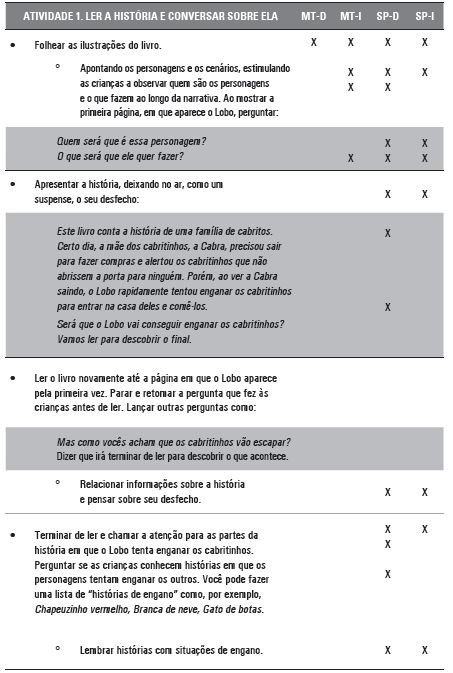 Exemplo da estrutura das atividades propostas ao professor no Caderno de Orientações: histórias com engano