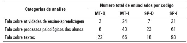 fizeram um maior número de referências no discurso às atividades de ensino e aprendizagem desenvolvidas em torno do texto, aos processos psicológicos dos alunos e ao texto propriamente dito;