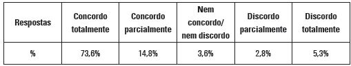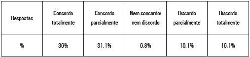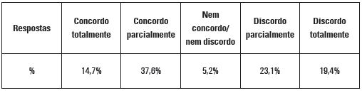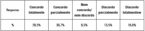 Outra questão realizada foi sobre o material utilizado nas SRM, cujo resultado está descrito na Tabela 4. Foi perguntado aos professores se eles possuíam, em suas respectivas SRM, todo material necessário para trabalhar, e apenas cerca da metade respondeu positivamente (52,3%), sendo que 14,7% concordaram totalmente.