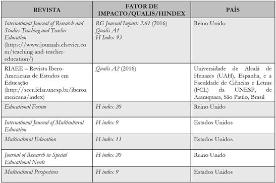 Além da aplicação desses critérios, os dados (textos identificados) foram avaliados de acordo com a classificação das revistas e periódicos em que foram publicados. Verificamos o H Index dos periódicos no site do SCImago Journal & Country Rankque, um portal ligado ao banco de dados da Scopus® (Elsevier B.V.), além da classificação Qualis-Periódicos (Quadro 2).