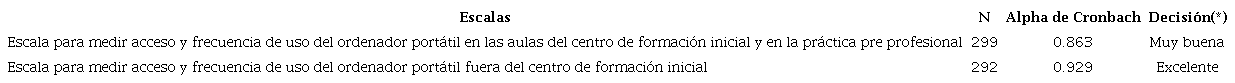 Los resultados acerca del grado de fiabilidad y consistencia interna de las escalas utilizadas se presentan en la Tabla 3.
