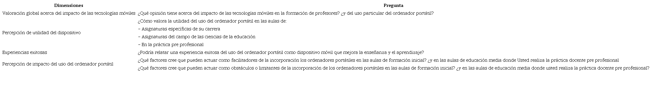 Por su parte, la entrevista fue semiestructurada. Se contó, por ello, con un guion que fue validado por expertos en didáctica e investigadores en tecnologías educativas. Los encuentros para llevar a cabo la tarea de campo se realizaron en el propio centro de enseñanza, pero fuera del aula de clases. La duración promedio de cada entrevista fue de 40 minutos. El guion de entrevista se presenta en la Tabla 4.