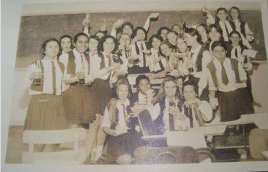 Fotografia encontrada (Imagem 2) na Escola Estadual Professor Fernando Duarte Rabelo dão-nos pistas também de práticas desviantes quanto às intenções curriculares oficializadas: