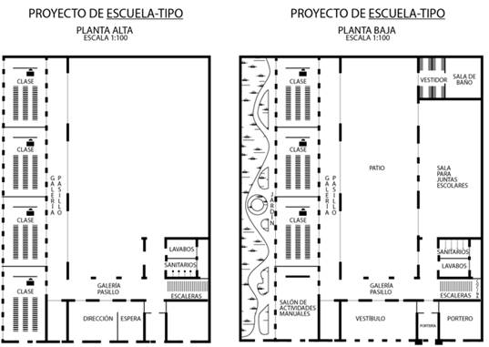 La arquitectura escolar fue definiendo a partir de la reglamentación gubernamental, el tipo de planteles que servirían de modelo para el diseño de los espacios escolares y que prevalecieron durante varias décadas del siglo XX. Los salones de clase fueron su parte medular; se convirtieron en el eje de poder de la escuela, en tanto en ese espacio se formaba pedagógica, social, mental, física e ideológicamente al niño.