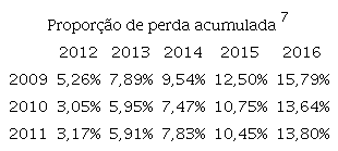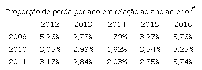 Dos professores da coorte que tomaram posse em 2009, considerando aqueles ainda ativos no início de 2012, 5,26% abandonaram a rede até o final de 2012. Uma taxa bem elevada, considerando que para os outros anos e para os outros grupos, as taxas de abandono em relação ao ano anterior ficaram entre 3,76% e 1,62%. Para os três anos de posse temos uma proporção de perda média de cerca de 3% ao ano (3,3% para docentes que ingressaram em 2009; e 2,9% para aqueles que ingressaram em 2010 e 2011).