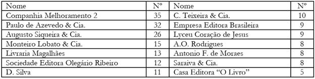 A pesquisa indicava que no ano de 1920 foram publicadas 203 obras, distribuídas por 15 empresas, o que permitiu traçar o seguinte quadro: