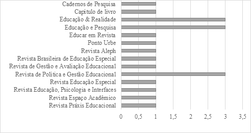 Outro dado analisado abordou o quantitativo de publicações vinculadas aos periódicos descritos no Quadro 1, sendo possível observar que “Educação & Realidade”, “Educação e Pesquisa” e “Revista de Política e Gestão Educacional” concentram a maior parte dos trabalhos que foram selecionados para a análise no presente estudo. Cabe destacar que, dentre os artigos selecionados, dez foram publicados em periódicos localizados na região Sudeste; sete na região Sul; um na região Centro-Oeste; um na região Norte; e um na região Nordeste - ratificando o conceito de “sudestificação” previamente mencionado.