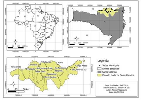 WASKIEWIC, Maicon. Mapa de localização dos municípios inseridos no território do Planalto Norte Catarinense. 2016. Instituto Brasileiro de Geografia e Estatística (IBGE). 2016.