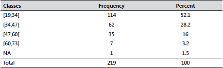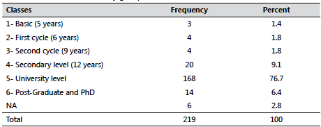 The sample, originally composed by 219 subjects, included mainly University students, some of them workers. Sample treatment: Evidently incongruent subjects or participants with missing data were excluded from the original sample, using the listwise method. Subjects that were not able to correctly understand Portuguese language, that is, the meaning of some adverbs, and detected outliers were also excluded. The final sample was composed by 198 subjects, although the following tables are based on 219 observations (Tables 2, 3 and 4).