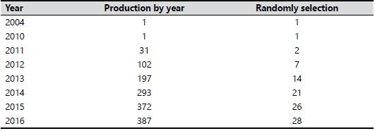 Definition of inclusion/exclusion criteria. After defining the purpose of the review, it was established that the texts to be selected should meet the following requirements: a) present research results, b) explicitly present the searching keyword in either the title or abstract, c) the subject was treated from an educational point of view and d) the text selection should represent a weighted percentage of scientific production according to different periods of time.