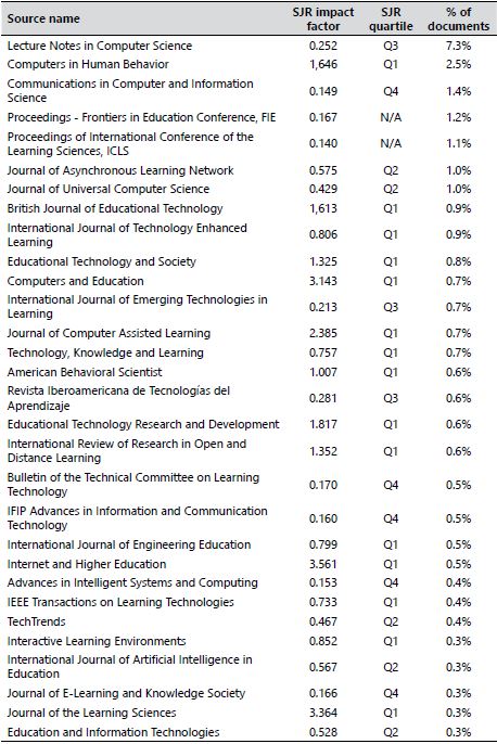 It is interesting to note that 28,2%% of the documents reviewed have been published in the top 30 of the sources consulted. The relevance and reliability of these sources of information is related to the impact factor of the journals and proceedings that have published the documents analyzed, in addition to their quartile location in the JRS, as shown in Table 2.