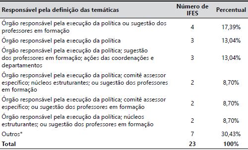 A Tabela 6.1 mostra que, dentre as IFES que ainda não têm uma política institucional para a formação continuada, não há uma convergência quanto à natureza das atividades. Observa-se que há, para cada uma delas, um diferente pensar em relação ao que focar na elaboração das atividades.