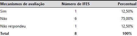 Na Tabela 8, observa-se que 43,48% das IFES, pouco menos da metade, declaram que não há recursos orçamentários destinados à política de formação continuada. Dessa forma, caberia identificar quais alternativas são utilizadas para a implantação da formação continuada dos docentes de cada uma dessas IFES.