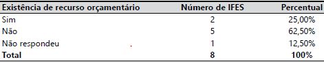 Na Tabela 8.1, observa-se que duas IFES declaram que há indicativo de haver recurso orçamentário para a implantação de uma política institucional de formação continuada.
